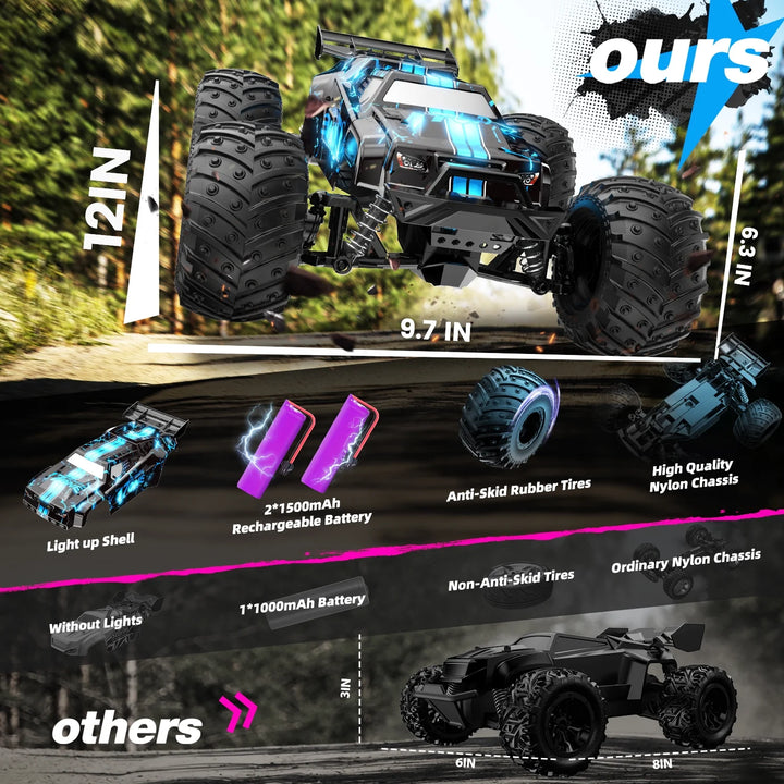 - 【RC Toy Gifts for Kids】This remote control truck is easy to control, making it a great gift for kids and beginners. Never wrong in getting this one! This tiny terror is ready for scale adventures, are you?