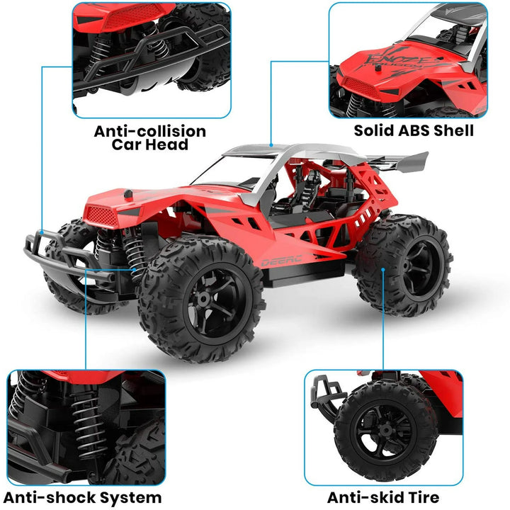 - ★ Longe Driving Time ★ Offered with 2 rechargeable Li-Po batteries, this off-road car can run about 60 minutes in total. 2 batteries for 200% fun. Easy to charge. Do not let’s battery life deduct enjoyment.
