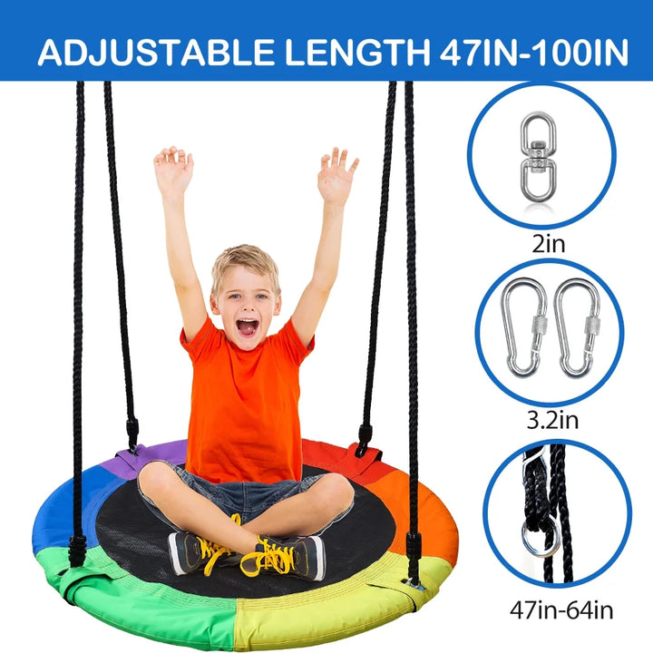 JoyStone Saucer Tree Swing Set for Kids Adults, 40" Multi-Strand Adjustable Ropes Flying Swing Seat for Outdoor Backyard, Multi-Color