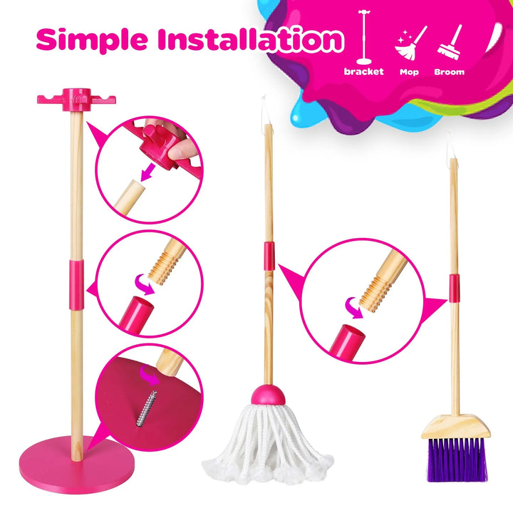 ✔ Includes broom, mop, duster, and dustpan for realistic play