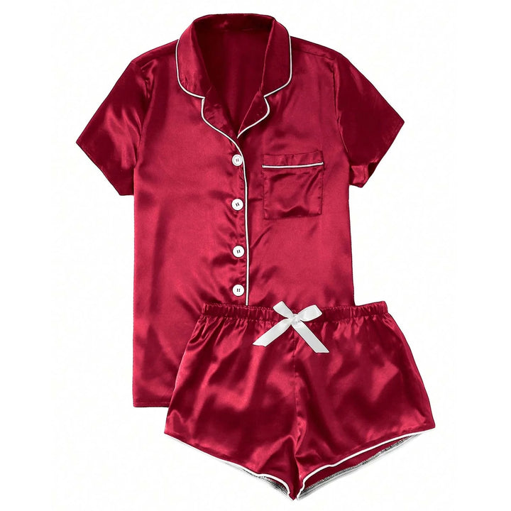 Kaemgyyd Women's Pajama Sets Plus Size Satin Sleepwear Silk Button down Short Sleeve Pj Tops and Shorts 2 Piece Loungewear
