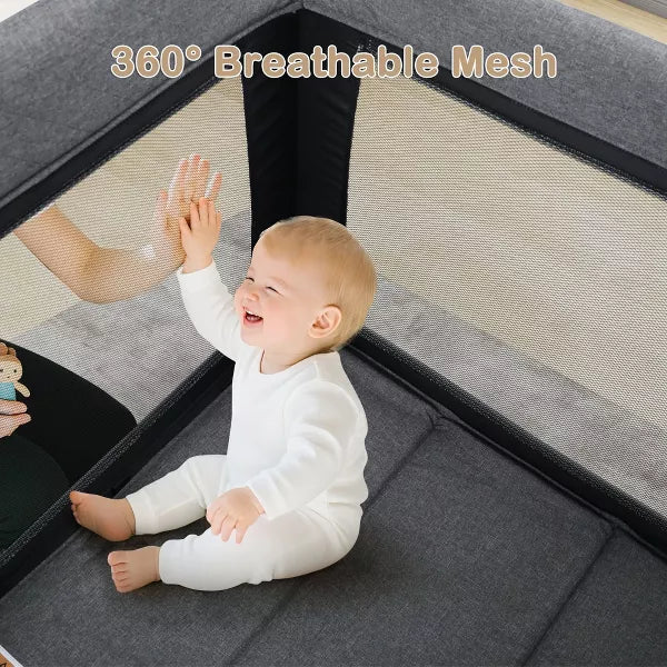 Multi Functional Playpen: The pack and play is designed with breathable mesh on all sides, making it convenient for parents to observe your babies; The spacious area for the baby to play freely or organization of the baby's esstionals
