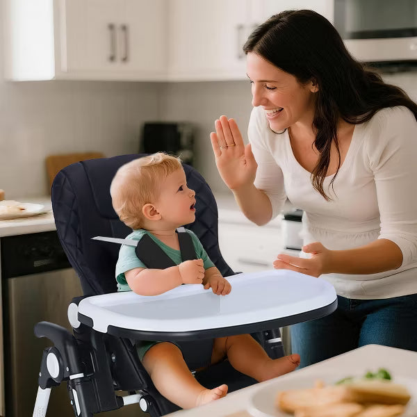 Kinder King Foldable High Chair for Babies & Toddlers, Adjustable Height, Recline, Storage Basket, Double Trays, Easy to Clean