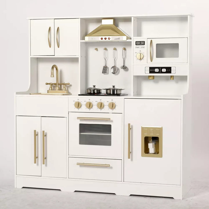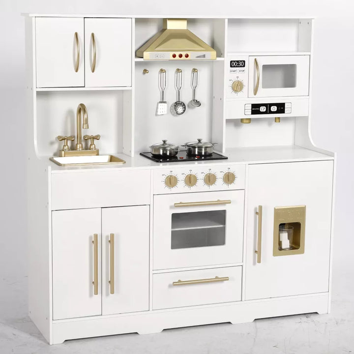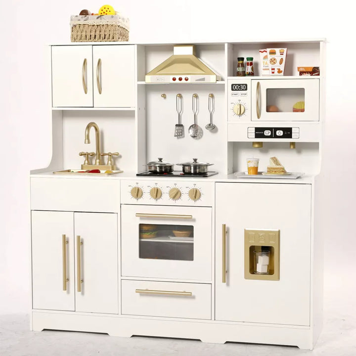 Kinder King Wooden Kids Play Kitchen, Toy Kitchen Playset for Toddler, Realistic Kitchen Sets w/Lights & Sounds, Gift for Boys Girls Age 3+