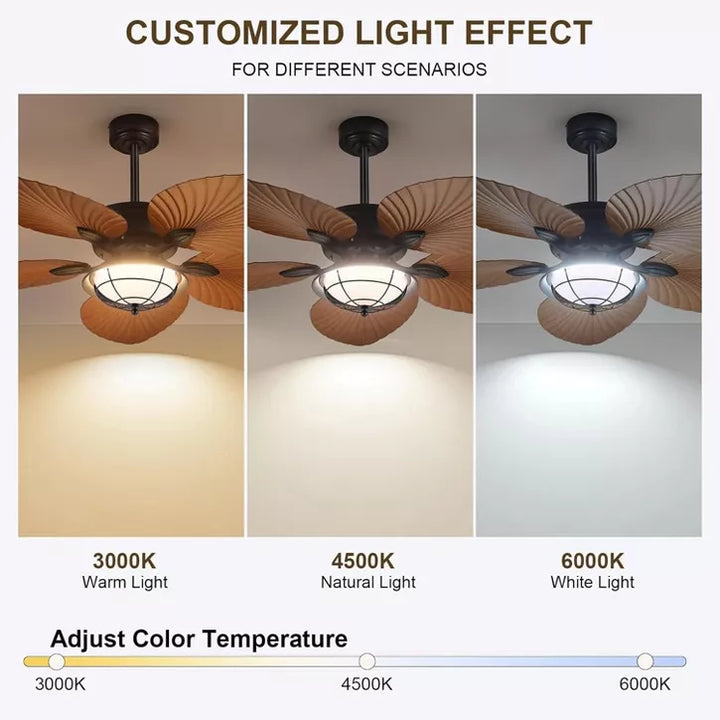 52" Tropical Palm Ceiling Fan with pure copper DC motor