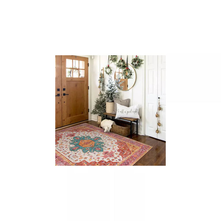 With a purposeful distressed treatment, the ultra-thin area rug offers an appealing retro theme and design that will impress anyone who sees it. Elegance, comfort and sophistication in timeless style, perfect for any traditional space. The multi-color palette and unique design allow this area rug to blend in with any decor while maintaining its distinctive feel, making it easy to create your personal style.