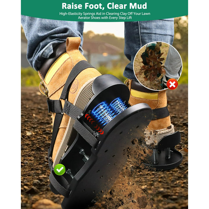 Lawn Aerator Shoes with Spring Base - Free-Installation Tool for Lawn Care - Automatic Leaf and Dirt Cleaning - Adjustable Laces - Perfect for Lawn, Yard, and Garden! (Black)