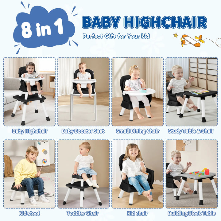 LINLUX 8 in 1 Convertible High Chair for Babies, Feeding Booster Seat for Toddlers, Black