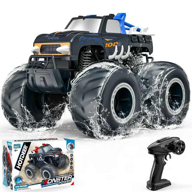 - Superior Control and Range: Dominate any terrain with this monster truck's impressive remote control capabilities. Enjoy a 40-meter range on land and a 20-meter range in water, allowing for versatile play. The robust rubber tires and waterproof car body (remote not waterproof) ensure durability and continuous fun.