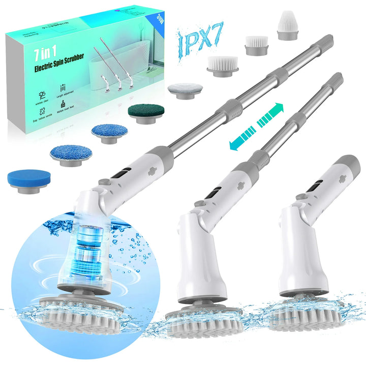 The LOHEER Electric Spin Scrubber is a cordless, water-resistant cleaning tool with a powerful 5000mAh battery, dual-speed motor, and an adjustable handle up to 51 inches. It includes 7 replaceable brush heads to tackle a wide range of surfaces like bathrooms, kitchens, tiles, showers, and even cars—making deep cleaning easier, faster, and more comfortable without bending or using excessive effort.