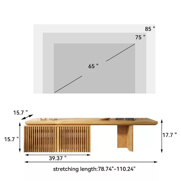 LOVSON 78 to 110-inch Retracted Extendable TV Stand, Console Media Cabinet with Storage,for Up to 55+ Inch,for Living Room,Bedroom,Natural