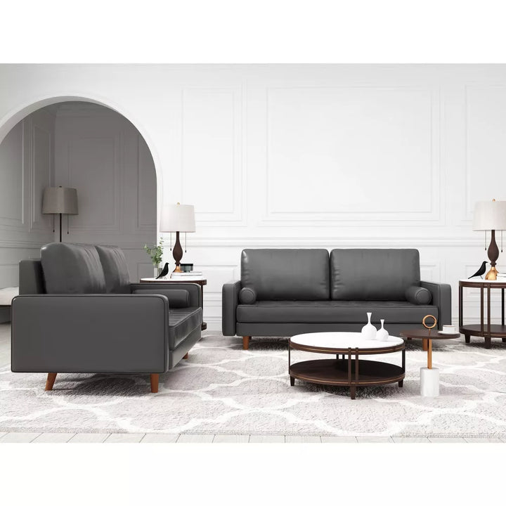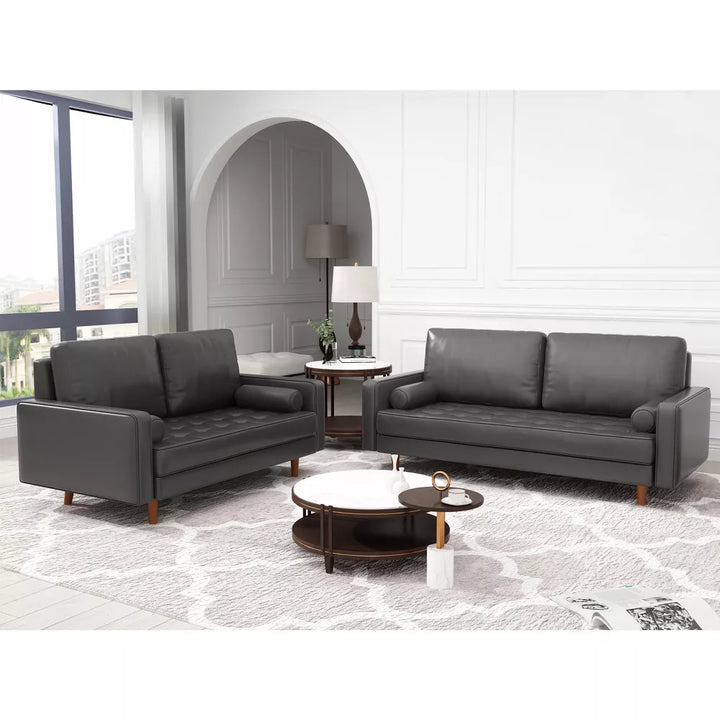 Refresh your living space with the Tufted Sofa and Loveseat Set, designed to bring modern style and lasting comfort to any room. Upholstered in durable, stain-resistant faux leather, this sleek set offers an eco-friendly option that's easy to clean and maintain. With its compact silhouette, it’s perfect for apartments, small living rooms, office reception areas, and other cozy spaces where style and functionality are equally important. Generous seating, tufted detailing, and a streamlined design make this set an ideal choice for contemporary homes, staging projects, and rental properties looking to maximize both comfort and visual appeal.