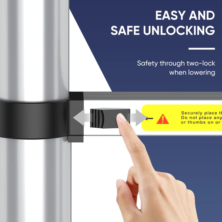 - Locking Mechanism & Intelligent Extension:The independent locking mechanism allows the telescoping ladder to be locked at every step to fix and adjust the extension ladder,effectively preventing accidental contraction(Pls take care your fingers when retract the ladder. Don't put your thumb between the ladder.)