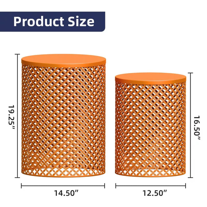 Maggift Patio End Tables, 2PCS Modern Cutout Patio Accent Table, Iron Side Table Weather Resistant, Iron Frame Patio Furniture, Orange 14.5"