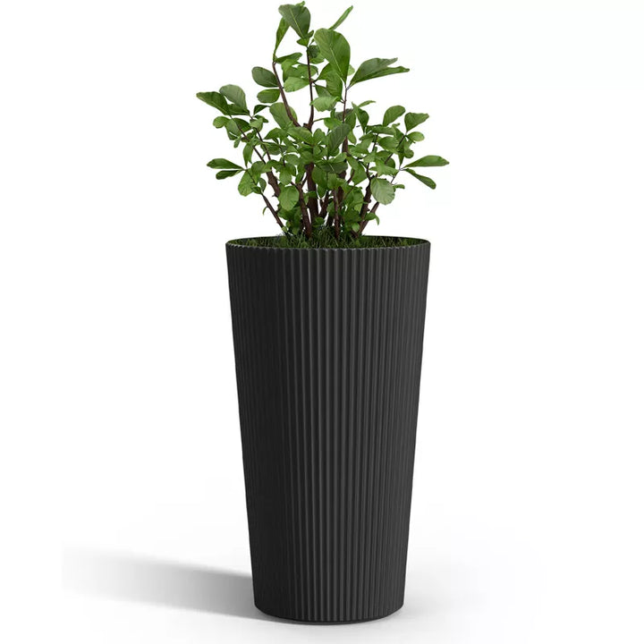 Maggift Planters Tall Planters, 2PCS Indoor Planter Pot Outdoor, Large Flower Pot Cone Striped Plastic Flower Pot , Black 13"*13"*23.6"