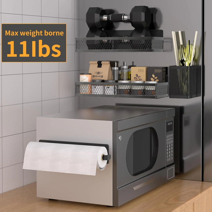 - High-quality Fridge Organizer Racks: Made of thickened high-strength steel, the spice basket rack can support up to 11 pounds. The material thickness of the paper towel holder and kitchenware holder exceeds 2mm, and the load-bearing capacity of the paper towel holder can reach 6 pounds, the kitchenware holder can reach 4 pounds.