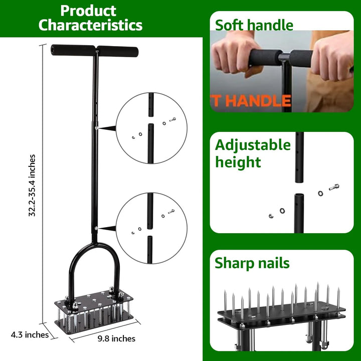 - Durable and High-Quality Construction: Built with robust materials, this aerator lawn tool is designed for long-lasting use. The sharp, durable spikes ensure effective soil aeration, even in tougher soil conditions