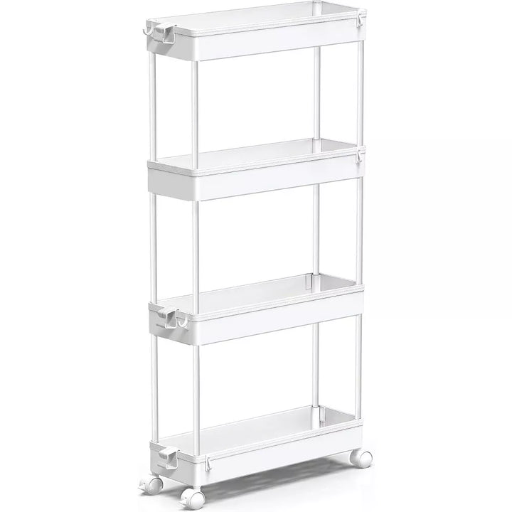【Flexible 4 Tier Storage Cart】- The 4-tier slim storage cart is 4.75 in design which can be used in tight spaces in your home for storage. Suitable for closets, kitchens, bathrooms, garages, laundry rooms, offices or in-between your washer and dryer.