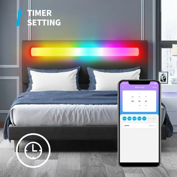 🎄【 Smart Music Sync & Timing Settings 】 Smart Music Sync Color Changing RGB LED Lights Strips; You can set a fixed time to turn off the LED light or change the color at a specific time.