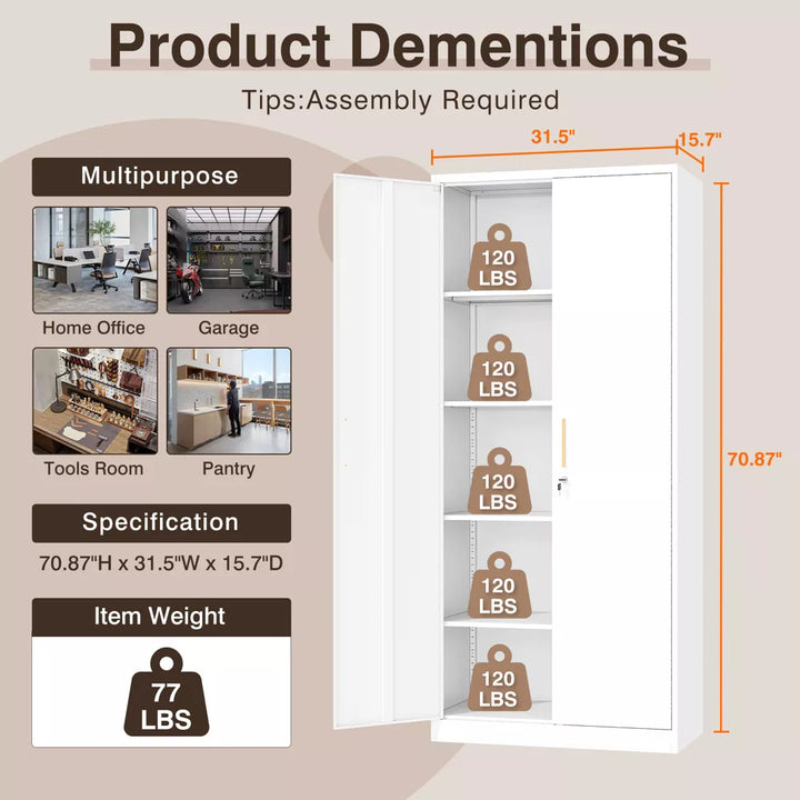 Mlezan 71" Metal Garage Cabinet: 2 Doors, 4 Adjustable Shelves, Locking Storage. Steel Cabinet for Home, Office, Garage, Shop, or School Use.