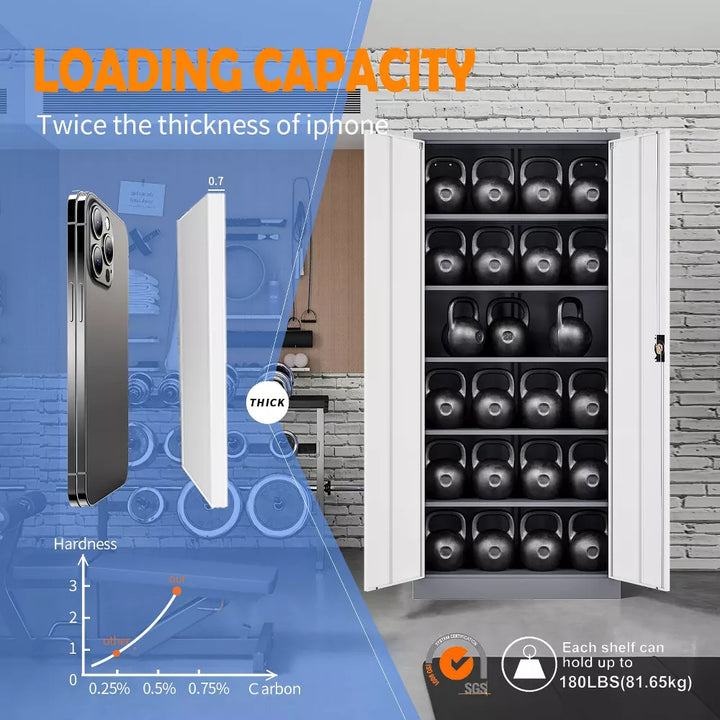 Mlezan Storage Cabinet with Locking Doors, 71" Tall 18" Deep Metal Cabinet with 5 Adjustable Shelves for Pantry, Office, Home Kitchen Pantry Cabinets