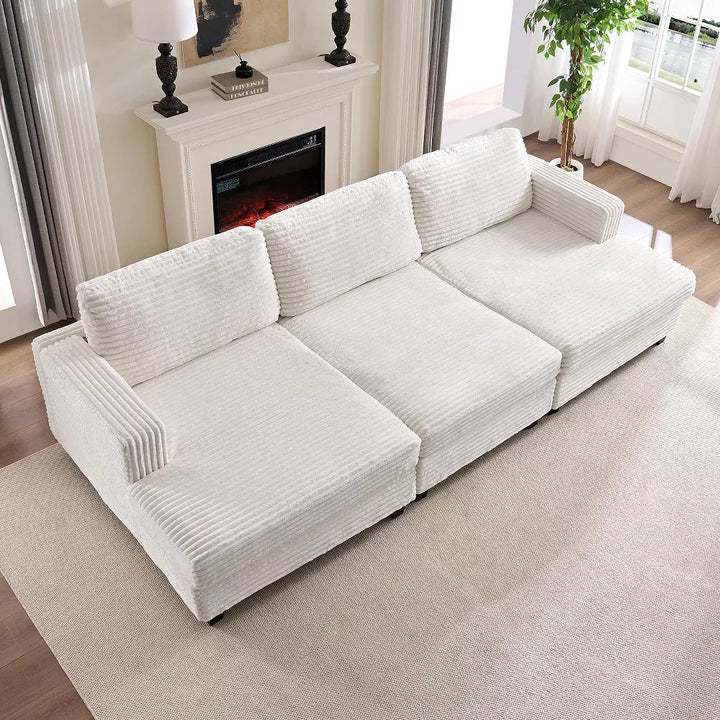 Modern Corduroy Fabric Convertible Modular 3-Seater Sofa Couch For Living Room