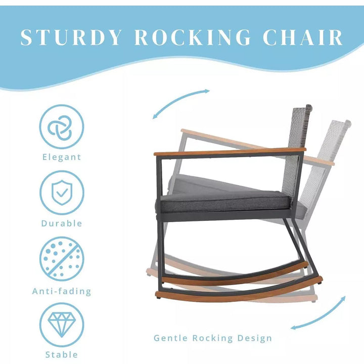【Durable and unique】This patio rocking chair set is made of a combination of hand-woven PE wicker and natural acacia wood, which is durable and uniquely beautiful. The weatherproof and wear-resistant materials guarantee long-term use in outdoor environments.