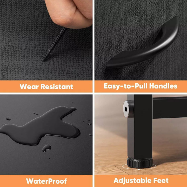 - 【Quality Construction】This fabric dresser combines water-resistant MDF board with a durable steel frame. a cross support bar to make it sturdy under load 66 lb. Anti-tipping accessories are also equipped to prevent accidents. With 4 adjustable feet, you won’t have to worry about stability, and it is also adaptable to different spaces.