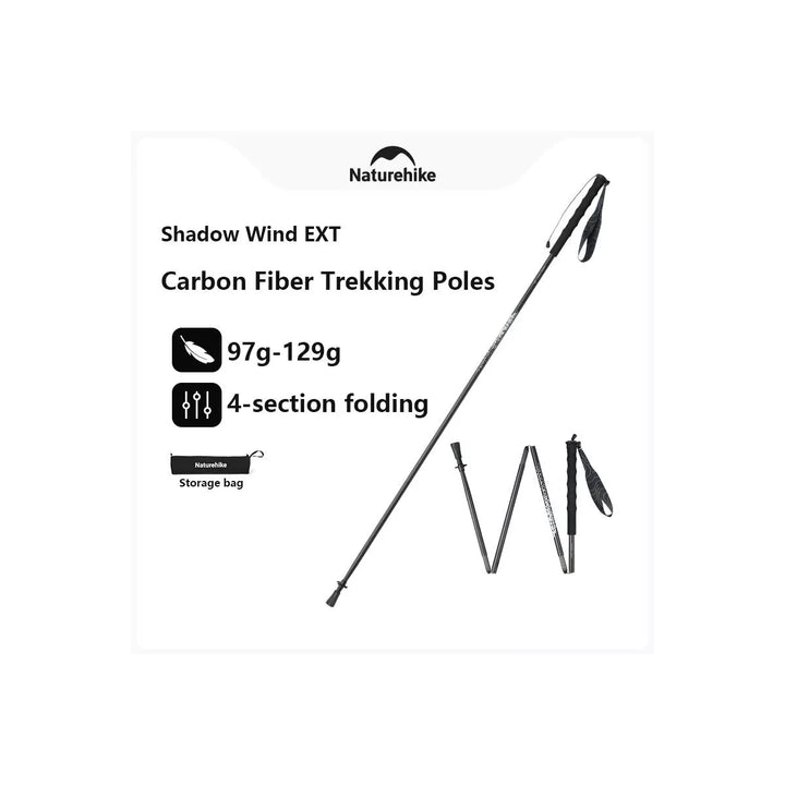 Naturehike 1pc 3K Carbon Fiber Trekking Poles-Ultra Lightweight Foldable for Trail Running,Quick 3-Second Setup,4-Section Design with Carry Bag