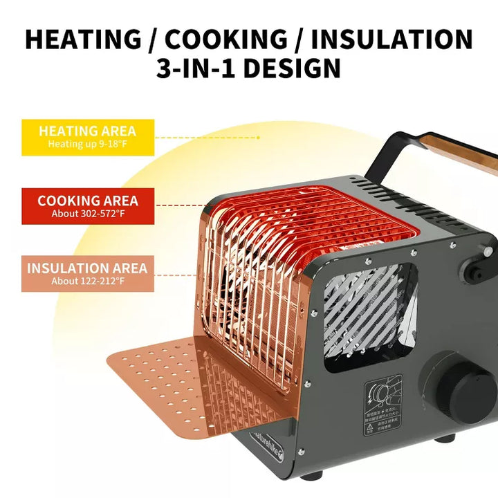 【3-Zone Temperature Control】There are three temperature control zones: heating zone: heating up about 5~10℃/41~50℉, cooking heating zone: about 150~300℃/302~572℉, and tea keeping zone: about 50~100℃/122~212℉. Three zoned temperature control is compatible with heating, cooking and keeping warm in one, you can cook tea at constant temperature while heating, ideal for outdoor camping.