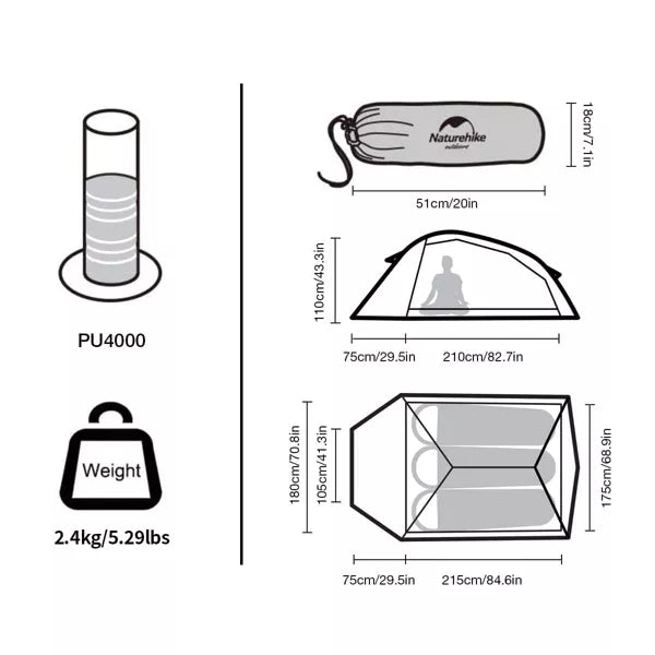 Lightweight Backpacking Tent: Made of lightweight & wear-resistant 20D nylon material, total weight about 2.3kg/5.07lbs; Small package size: 20x7.1x7.1inch(51x18x18cm), fits your backpack with plenty of room for other camping gears, the Cloud up 3 Person Tent is perfect for 2 Person or 3 Person backpacking, camping, hiking, cycling, etc.