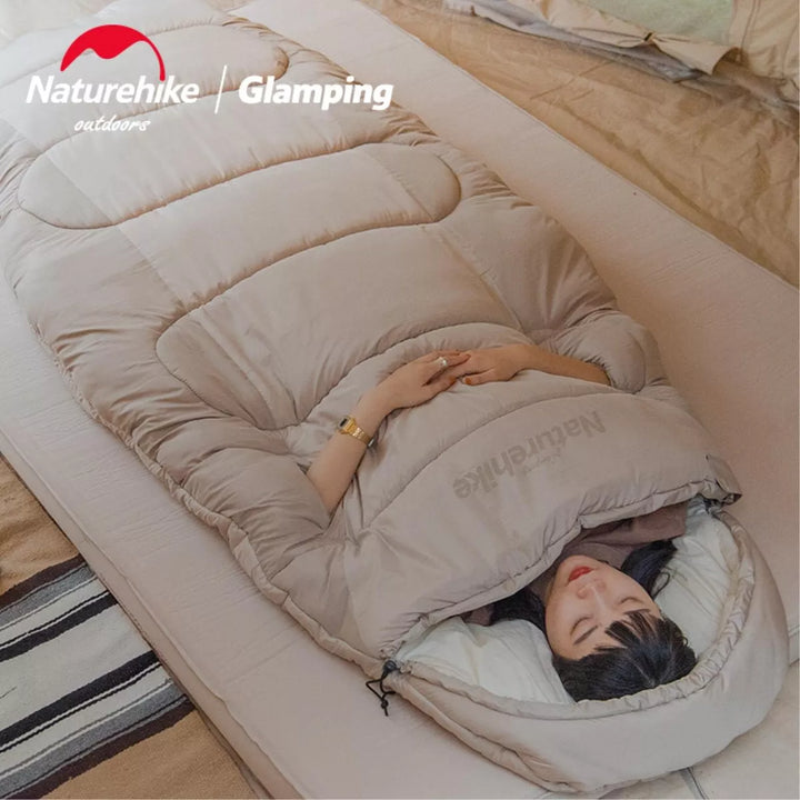 Naturehike Cotton Sleeping Bag, Large & Breathable, Soft Pure Cotton Lining, Washable with Foot Zipper for Ventilation, Lightweight & Spacious