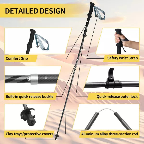 Durable 7075 Aluminum Construction – Made from high-strength aluminum alloy, these trekking poles offer excellent durability and impact resistance for rugged outdoor adventures.