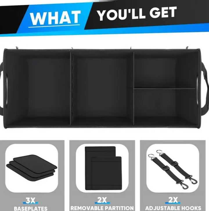 - NEXPOW 1pc Large Car Trunk, Foldable Storage Bag, Car Storage Bag Storage Box, Car Storage Box for Organizing Clothes, Travel Seasons, and Moving and Packing. With 2 Retractable Straps, Suitable for Car, SUV, Truck