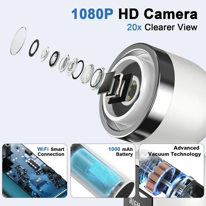 - HIGH-DEFINITION CAMERA: The NEXPURE pore cleanser has a built-in 1080P high-definition camera and 6 LED lights, which can magnify the skin 20 times and clearly see blackheads and acne. You can also watch the acne removal process in a very decompressive manner. You can also take photos and videos, which is better than traditional Acne removal tools are more practical and effective.