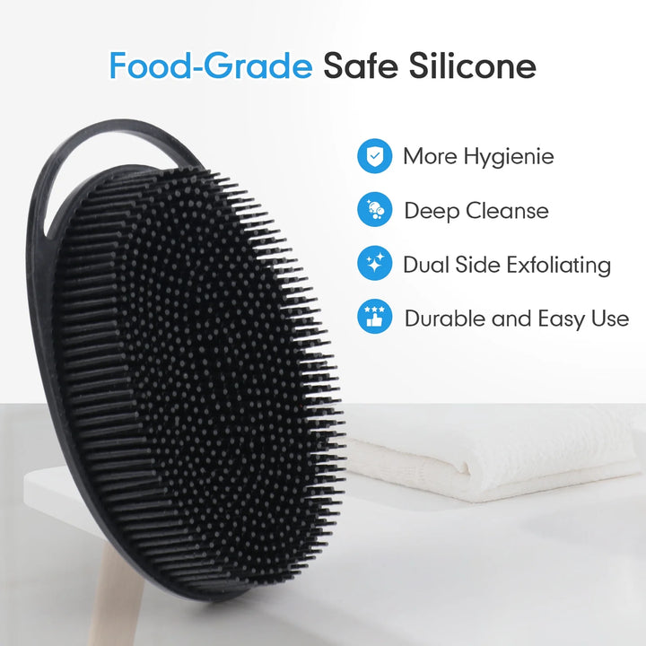 Elevate your shower routine with the OKAKA 2 Pack Silicone Body Scrubber. Featuring a dual-sided design, one side boasts soft, long bristles that create a rich lather to effectively remove dead skin and dirt, while the other side gently massages with slightly hard bumps to boost blood circulation. Crafted from 100% food-grade silicone, this hygienic and easy-to-use scrubber is suitable for all skin types, including sensitive. Compact and travel-friendly, it's perfect for maintaining your skincare routine at home or on the go.