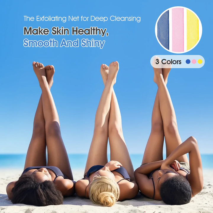 The African exfoliating net sponge is a versatile and essential bathing accessory designed for effective skin care and hygiene. Made from high-quality nylon, these sponges are durable and quick-drying, and the feature with rich foam make them perfect for daily use. The extra-long design ensures easy reach for cleaning hard-to-access areas like the back, while the exfoliating texture helps remove dead skin cells, dirt, and oil, leaving your skin smooth and glowing. Available in various colors and pack sizes, these sponges are suitable for all family members, including adults, kids, and teens. Lightweight and portable, they are ideal for home use, travel, gym, or even camping. With their superior quality and easy maintenance, these African net sponges offer a practical and enjoyable bathing experience. ?? Features: ??1. Deep Cleansing & Exfoliating ??2. Rich Foam & Quick Dry ??3. Handle Design for Easy Reach ??4. Double Layer Fabric Durable ??5. Pack: 3 color( Yellow+Blue+Pink) size: 30"x 5.5"