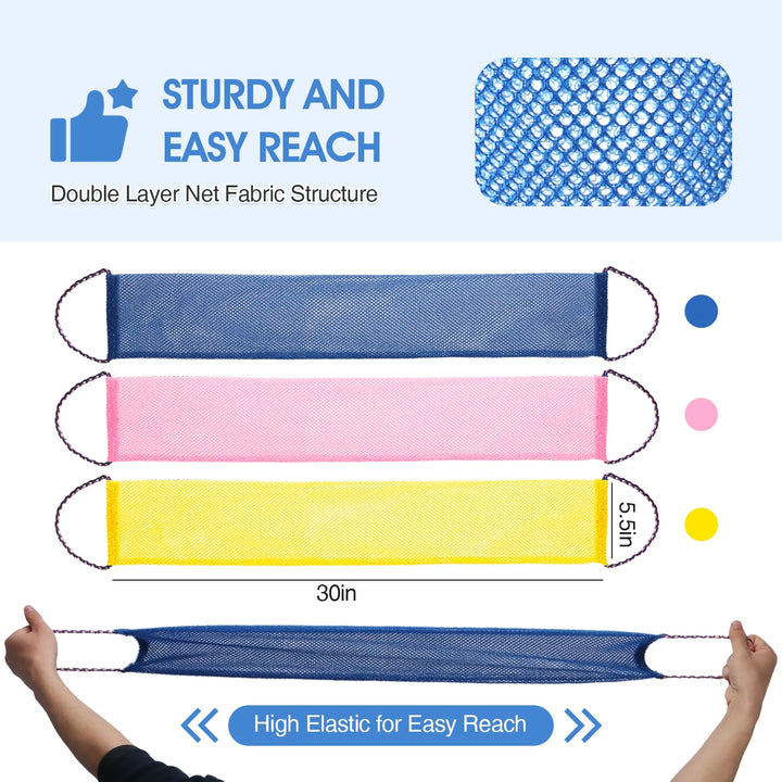 - 3. Handle Design With Elastic for Easy Reach: With Special design of two side handle and a length of 30 inches, this net sponge allows you to easily clean your back and other hard-to-reach areas, ensuring a comprehensive and comfortable bathing experience.
