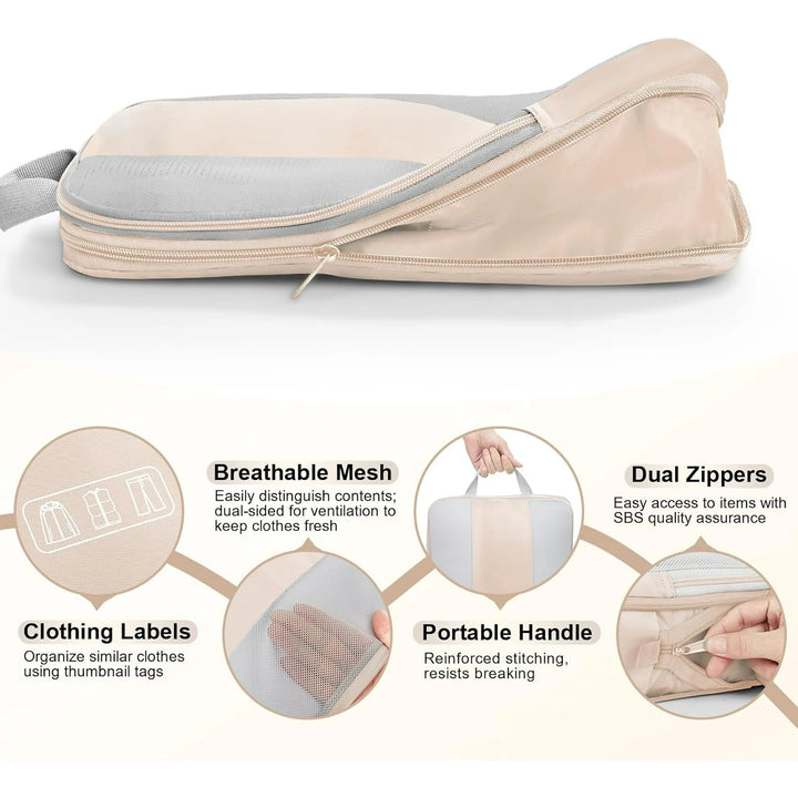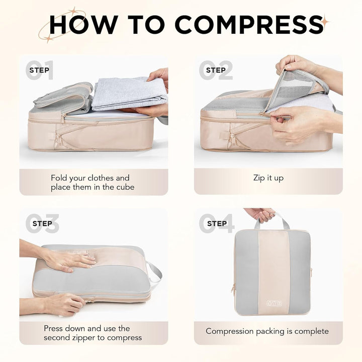 OKAKA 6 Set Compression Packing Cubes Travel Accessories Expandable Packing Organizer Bags Mesh Lightweight,Beige