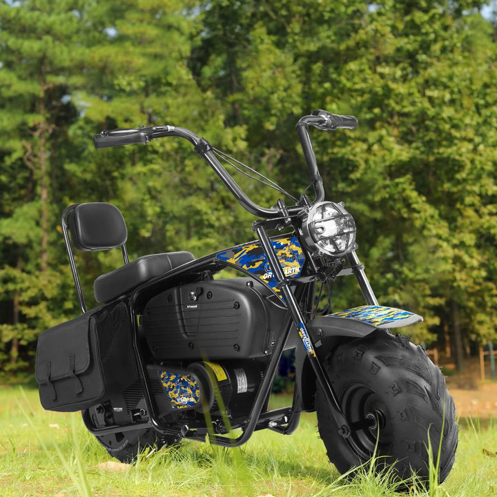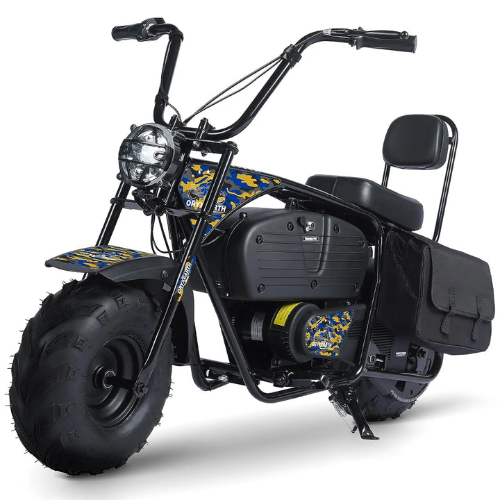 Oryxearth 36V Battery,1000W Motor Electric Dirt Bike, Powered Motorcycle Mini Bike for Kids, 2 Speeds-15.5MPH/22 MPH, Camo. The Electric Mini Bike features a dirt bike frame and a high-torque, variable-speed motor for a superb riding experience that takes backyard adventures to the next level.    This ride-on toy is very simple to operate and easy to drive. The electric dirt bike has 2 driving modes, high speed, and low speed, you can choose different speeds, which are safer for your kids and suitable for different riding scenarios and road surfaces. The kid's bike is equipped with a headlight, so you can ride at night with confidence, illuminating the road in front of you while alerting oncoming traffic, for greater safety. The electric bike for kids is equipped with 2 large-capacity removable hanging bags, convenient for storing items when traveling, increasing the storage space you can carry.