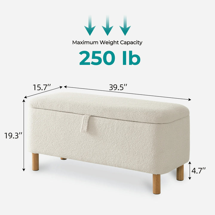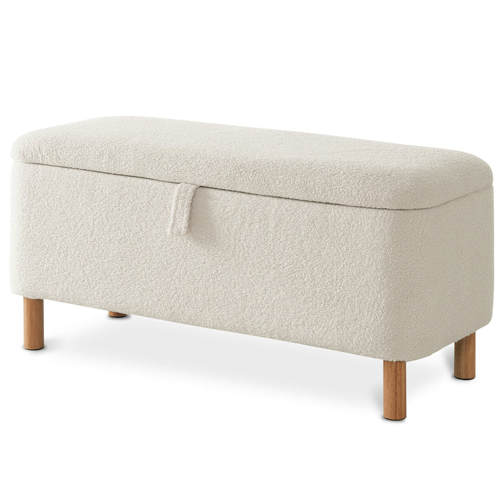 Othniel 39.5" Off-White Boucle Storage Bench Ottoman with Wood Legs for Bedroom End of Bed