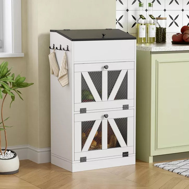 【Multi-Functional Storage Bin】Breathable wire mesh walls + doors ensure perfect airflow circulation to prevent spoilage. Safely store onions, potatoes, garlic, or fruit while keeping pests out with sealed cabinet doors. Stainless-steel hinges/slides built to last.