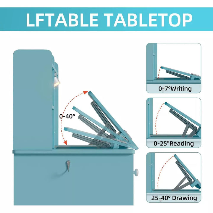 【Kids Desk with Tiltable Desktop】The kids desk has a desktop that can be tilted from 0° to 40°. This means that your child can find the perfect angle for every task, such as writing, reading, drawing, etc. You can adjust the toddler desk angle to help improve posture, reduce neck and shoulder pain, and reduce eye strain. This will help your child to concentrate and focus.
