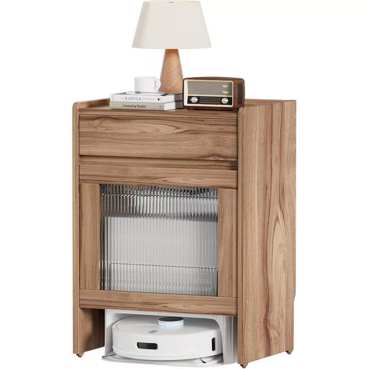 PAKASEPT Mobile Robot Vacuum End Side Table, Nightstand and Bedside Table with Storage Cabinet and Wheels, for Living Room