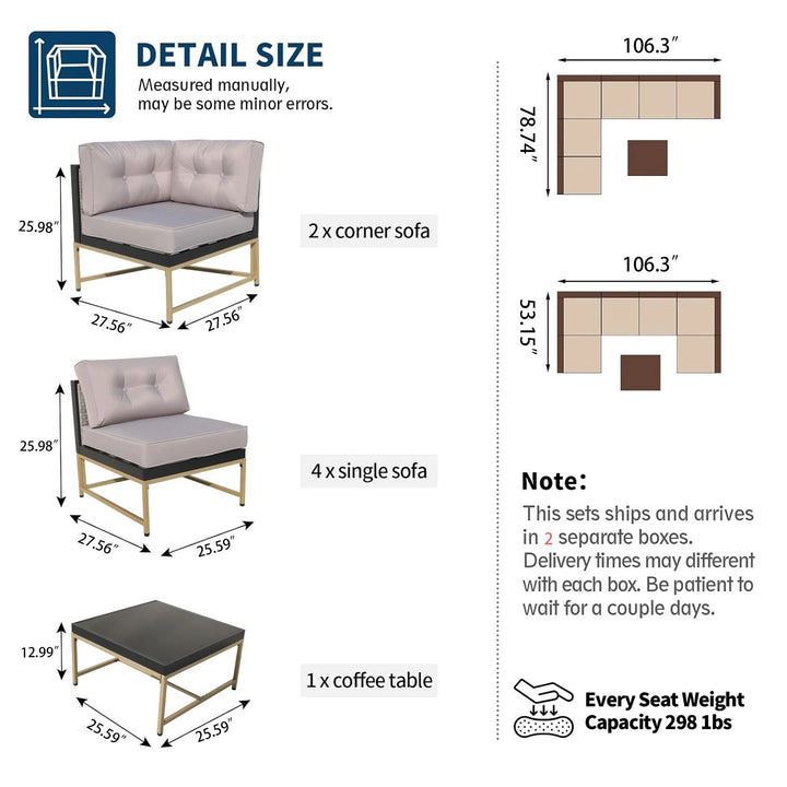 [Highly Adaptable] - The patio conversation set includes middle sofas, corner sofas, and coffee table. Styles covered are unique and diverse, suitable for any decorative fashion and various scenes. Variety of layouts and combinations based on each of the pieces, depending on your needs and better space utilization, no matter indoors or outdoors.