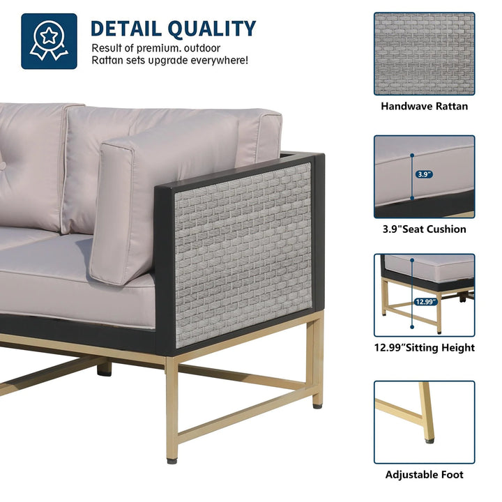 [Sturdy & Durable] - This outdoor sectional sofa sets with solid frame, high-quality PE wicker are strong enough to withstand all weather variations. Thickened water-resistant durable cushions and tempered glass are easy to clean.