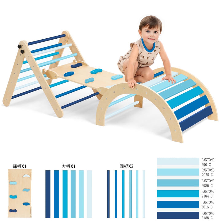 8-in-1 Pikler Climbing SetThis Montessori climbing set combines a Triangle Ladder, Climbing Ramp, Arch Climber, Rocker, Toddler Slide, arch cushion and tent making it the ultimate indoor climbing and play structure for kids. The climbing set offers more than 8 different play modes and gives children a wide range of activities to choose from using our Pikler Triangle.