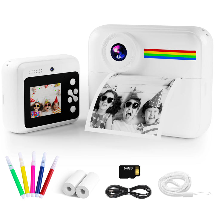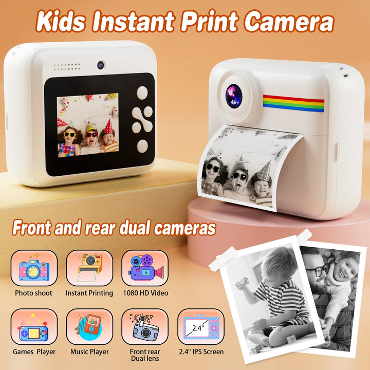 - 📸Instant Print Paper, 48MP Photos, 1080P Videos – All in One! Our instant print camera for kids is a 3-in-1 digital camera that combines instant printing, video recording and photography. Meeting children's diverse entertainment needs, the 1080P video recording function allows children to make fun videos. This kids camera is more than just a toy camera - it's a creative companion for your child's adventures.