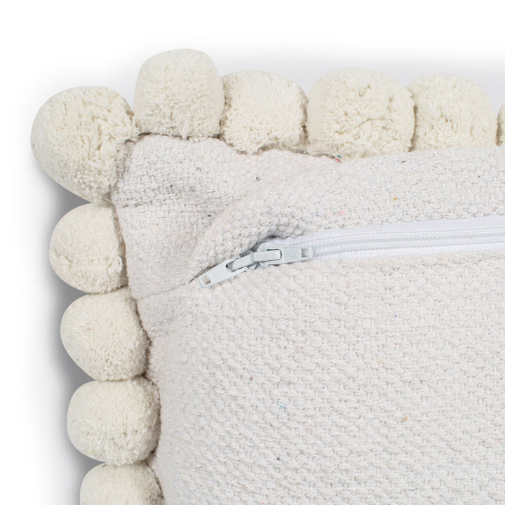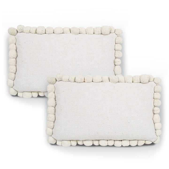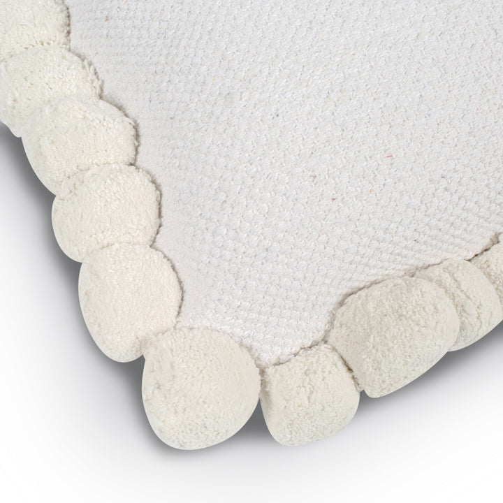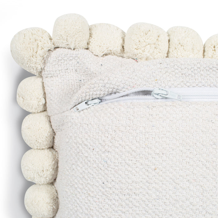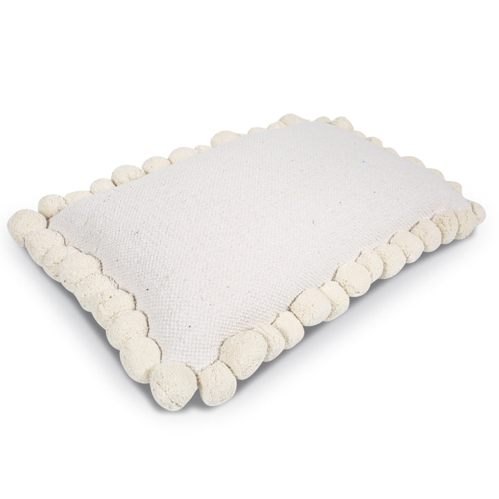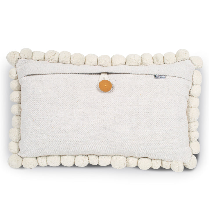 Our Pom Throw Pillow is always a good idea. A rectangular frame of poms will give your space the perfect amount of texture, neutral tones, with no shortage on style. Expertly crafted by artisans in India, this accent pillow is perfect solo or amongst friends, and would love a spot on your sofa, loveseat, or bed.