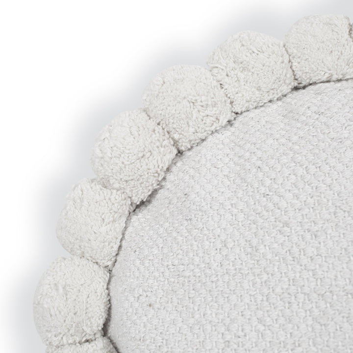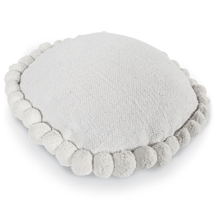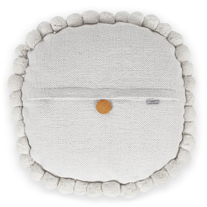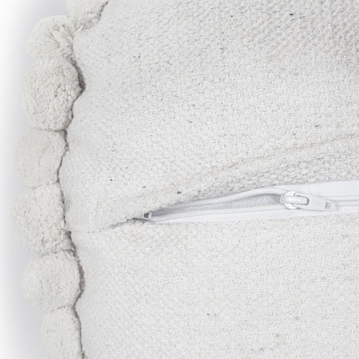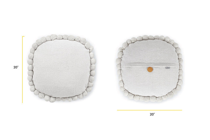 Our Pom Throw Pillow is always a good idea. A circular frame of poms will give your space the perfect amount of texture, neutral tones, with no shortage on style. Expertly crafted by artisans in India, this accent pillow is perfect solo or amongst friends, and would love a spot on your sofa, loveseat, or bed.